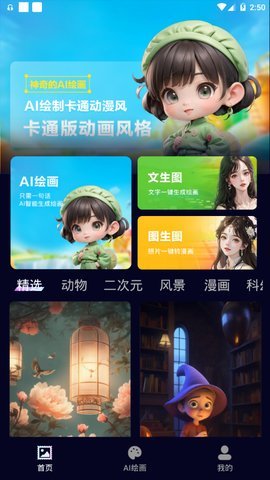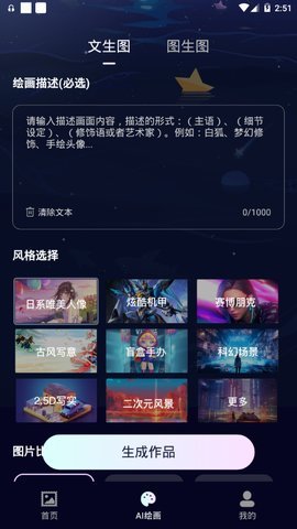 1、AI绘画鱼还拥有文生图功能,用户只需输入文字描述,该应用就能根据文字内容生成对应的绘画作品。