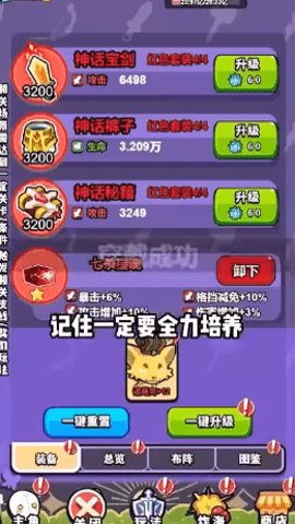4、玩家可以解锁各种英雄、装备和道具,通过挂机升级来提升实力。