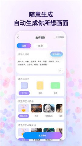 2、这款应用还支持自定义绘画,用户可以根据自己的喜好调整绘画风格、颜色、笔触等参数,创作出更具个性化的画作。