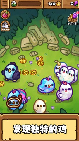 我养鸡贼牛是一款极具趣味的休闲游戏,它属于探索类游戏,玩家需要用鸡填充每个世界并解锁下一个。这些愚蠢的奇琴人会让你猝不及防,你永远不知道它们会做出样的行为。 游戏的初始场景是森林,你会得到一只小白鸡作为起始鸡。