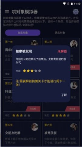 2、游戏提供了多个互动对象,每个对象都有独立的角色和背景故事。