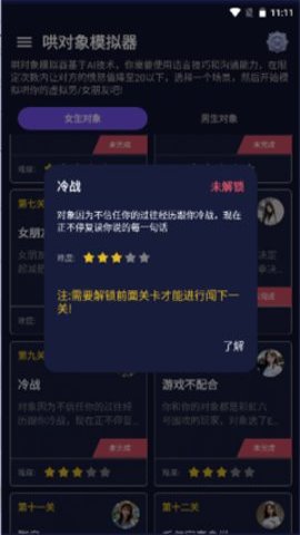 2、哄对象模拟器是一款手机恋爱类型的游戏,它提供了许多日常生活中情侣之间遇到的。