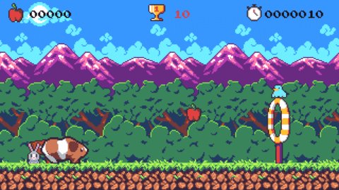 3、豚鼠跳跃以其复古的像素画风和超可爱的豚鼠形象而闻名,是一款非常有趣的跑酷游戏。