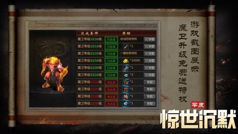 1、零度惊世沉默是一款独特的传奇手游,为玩家带来深入的游戏体验和无尽的冒险乐趣。