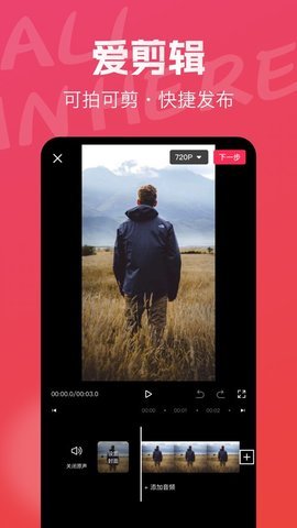 2、这是一个帮助用户表达自我的原创短视频分享平台,你可以用它记录美好生活,展示自己的才华,让更多人看到你的作品。