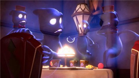 3、在电梯走廊的右侧,玩家可以先召唤出傀易吉,一人利用吸尘器拉开蛇像下的机关,另一人则用吸尘器将蛇像嘴里的宝石吸下来。