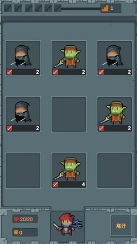 2、玩家需要深入无尽的地牢,每一层都有9个格子,每个格子都隐藏着不同的事件,例如怪物、装备和道具等。
