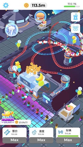3、你可以经营自己的专属游乐园,在这里不断升级娱乐场的设施和规模。