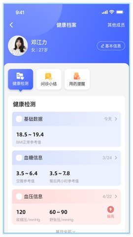 3、不仅具备在线问诊咨询功能,还能创建家庭健康档案,实时记录健康数据,让您的健康状况一目了然。