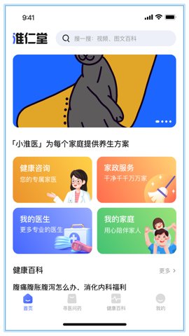 3、小淮医管家APP由中国知名的药业——安徽淮仁堂药业股份有限自主研发,结合快速线上问诊、关爱老人、线上体检、健康监测、数据共通等多方面功能,致力于打造一个多端互通的公共服务平台。