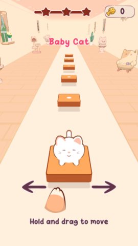 2、玩家需要长按屏幕并左右滑动,以控制小猫咪落在板块上。