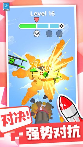 4、这款游戏是一款休闲闯关类游戏,玩家需要升级强化自己的导弹,不断地消灭所有的敌人关卡。