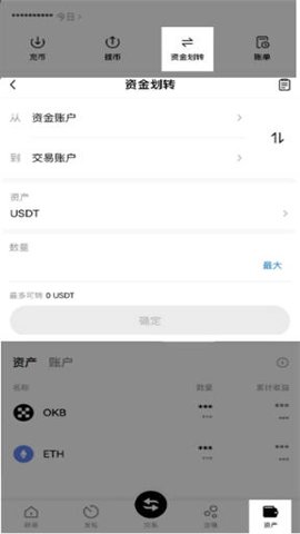 1、若用户想要交易其他数字资产,需要进行“资金划转”,将资产从【资金账户】划转到【交易账户】,以便进行更多的交易。