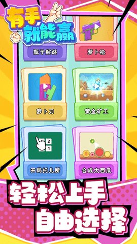 3、作为抖音热门的休闲益智闯关游戏,有手就能赢具有非常多畅快且解压的玩法,等待玩家的参与。