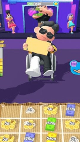 2、在模拟暴富记中,玩家以乞丐为主角,通过点、滑动、观看的操作方式赚取金钱。