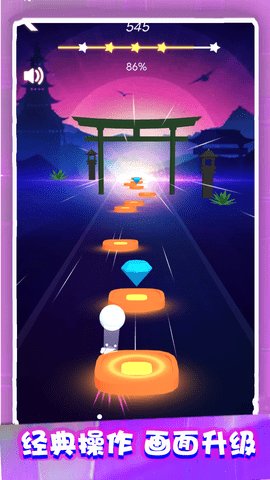 闪耀舞动是一款充满活力和刺激的音乐节奏类手游,它融合了休闲娱乐和挑战竞技的元素,让玩家能够在快节奏的音乐中感受到无穷的乐趣。游戏的特色在于华丽的舞蹈音乐和流畅的跑酷操作,让玩家仿佛置身于一个充满活力和激情的音乐舞台上。 玩家需要通过灵活的操作控制小球跳跃和滚动,拾取道具加速前进,突破各种难关。