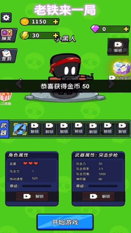 2、各种武器和装备如闪电、火箭、砖头、足球、轮盘等可以帮助玩家提升实力,而在商店中购买喜欢的武器和角色装扮也是一种乐趣。