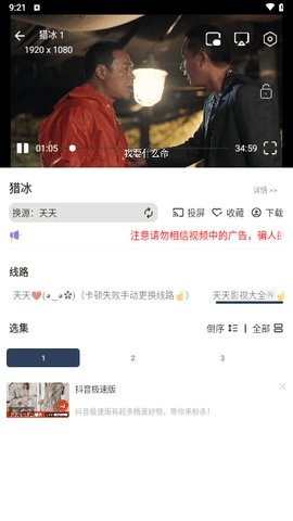 1、软件还具有自动跳过片头和片尾的功能,整个应用和视频中都没有插播广告,保持了极致的纯净。