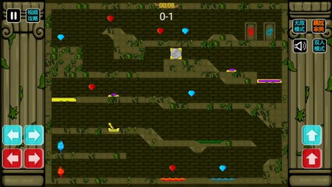 森林冰火人火娃冰娃无敌版是一款非常经典的冒险解谜游戏,由火娃和冰娃两位角色主演。游戏中,玩家需要控制两个技能属性不同的角色协同冒险,收集所有的钻石到达出口。游戏可以采用双人的模式进行,还能够切换为无敌模式来挑战。