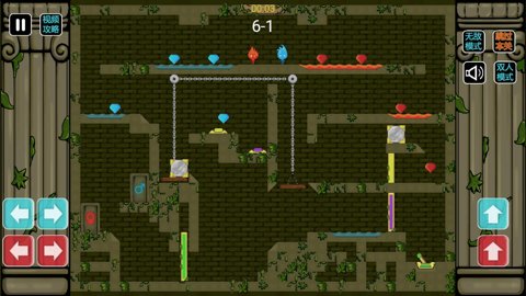 3、森林冰火人火娃冰娃需要两角色很好的配合,不论是一个人还是两个人玩都可以。