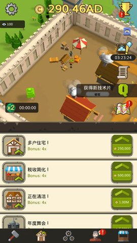 4、玩家可以利用金币购买更多土地,解锁更多设施玩法,成为一个中世纪强国。