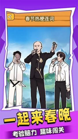 1、一起来春晚是一款融合众多梗的推理益智游戏,通过娱乐形式提升了玩家的文字品味和幽默感,同时增加了趣味性。