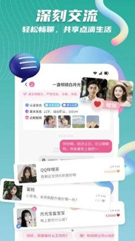 1、这款应用还拥有个性化的推荐系统服务,根据用户的偏好和兴趣进行交友互动体验,确保用户能够找到与自己志趣相投的朋友。