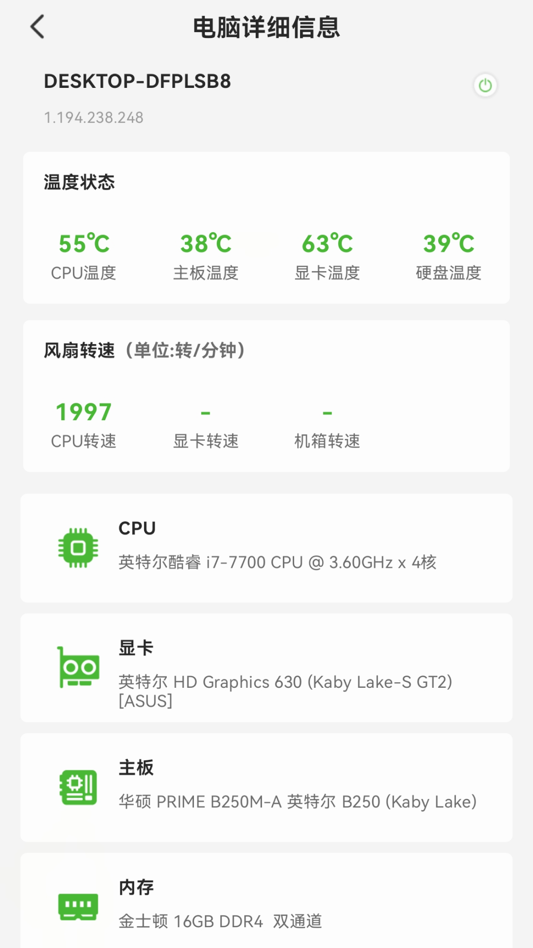 1. **实时硬件监控**:硬件狗狗能够实时监测计算机各个硬件的运行状态,包括CPU、显卡、内存、硬盘等。用户可以通过手机随时查看这些信息,了解设备的性能表现。