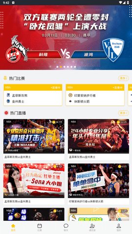 2、逛球街体育直播是一款免费的体育赛事直播软件,覆盖了意甲、西甲、德甲、法甲、欧冠、NBA等热门赛事。