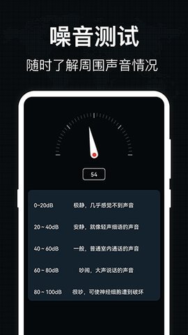 分贝噪音测量探测工具是一款实用的手机工具,主要用于测量周围环境的噪音分贝值,帮助用户了解环境噪音水平。除了分贝测量功能外,该工具还具有多种其他实用功能,如信息查看、指南针功能、LED灯光设置、海拔测量、测角工具等,为用户提供了全面的测量解决方案。 信息查看功能可以轻松获取经度、纬度、海拔、磁场等多种信息,帮助用户做出更加准确的决策。