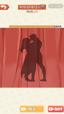 4、在另一个关卡中,玩家需要帮助新娘堵住房门,点击新娘裙子3次,拖动物品到门上,通过各种脑洞大开的方式解谜,激发思维。