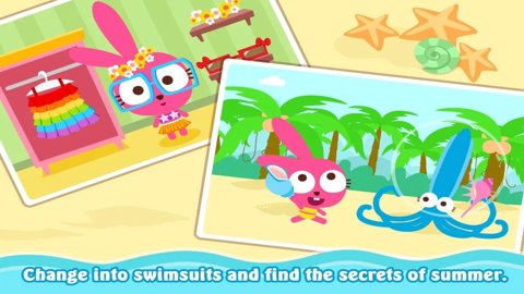 1、泡泡兔夏日海滩最新版是一款非常适合小朋友玩耍的休闲益智游戏。