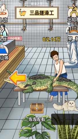 尔滨搓澡之王是一款备受欢迎的休闲解压手游,让玩家在快节奏的生活中找到独特的释放压力的方式。玩家将扮演一名搓澡师傅,在澡堂中为顾客提供各种沐浴服务,包括按摩、沐浴、揉背等,让每一位顾客从头到脚焕然一新,满意而归。 玩家需要经营自己的盘古澡堂,通过积累金币来购买并升级设施,提高澡堂的服务质量和吸引更多顾客。