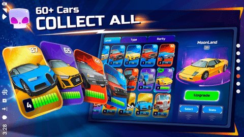 3、游戏中还有独特的撞车玩法,玩家可以升级自己的汽车,加入到充满策略和刺激的比赛中。
