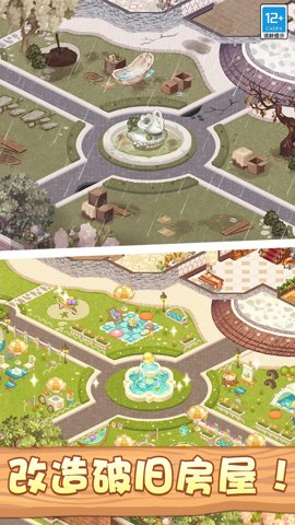 2、完成关卡后,玩家可以使用星星建造多种家具,丰富场景多样家具选择,将破旧的房屋改造成全新的样子!同时游戏中还有超多精美的主题风格装扮任玩家尽情的搭配,各种十足的小游戏等着玩家来体验。