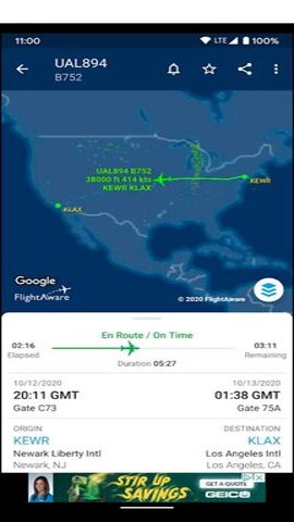 2、FlightAware还提供了全屏跟踪飞机的功能,让用户可以高效地了解飞机的实时位置和状态。