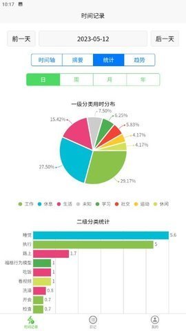2、书app提供了线功能,用户可以清晰地看到自己一天的分布,了解自己的都花在了哪里。