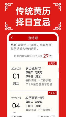 2、用户可以查看黄历信息,了解节日和节气信息,选择黄道吉日。