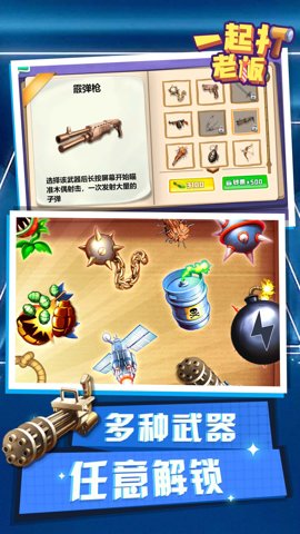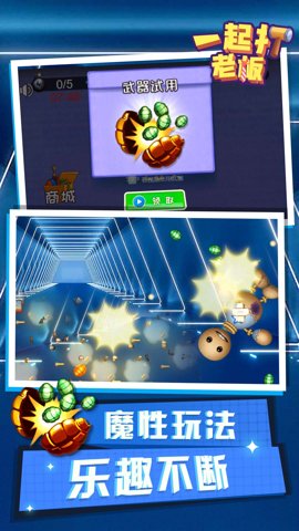 1、一起打老板是一款非常适合缓解压力的解压手游,游戏中的操作简单,武器和道具丰富多样,画面精致,玩家可以享受到前所未有的爽快体验。