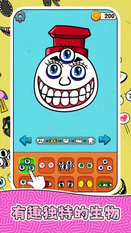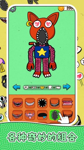 2、游戏中有丰富的头像、眼睛、嘴巴、饰品和大小等元素,可以自由搭配,创造出独一无二的怪兽形象。