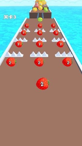 3、玩家只需轻轻按住屏幕,控制各种水果球球的滚动方向,遇见相同种类的水果即相同数字即可合成。