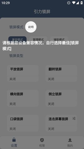 1、这款多功能手机锁屏App支持多种锁屏模式,操作简单,还可以一键开启自动锁屏,省时省力。