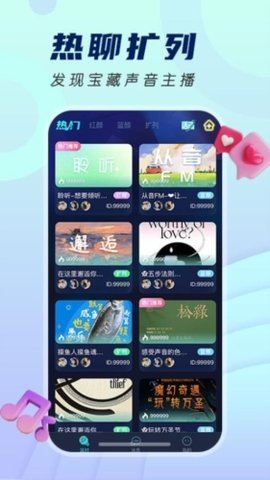1、应用中提供了多种类型的聊天室,满足不同用户的聊天喜好,包括唱歌、游戏、聊天等。
