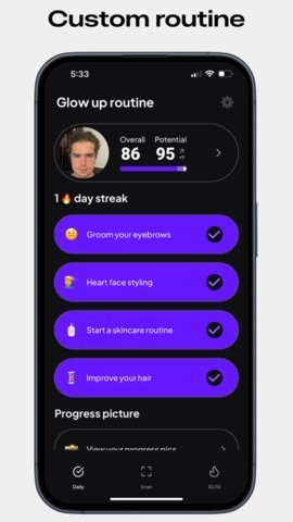Umax颜值打分器是一款实用的生活工具应用,不仅可以帮助用户提升个人形象,还能根据分析结果提供化妆、保养、发型等方面的建议。通过人脸识别技术,该应用可以识别出人脸的72个特征点,进行大数据分析,最终给出颜值评分结果。 这款App利用人工智能技术对人脸进行分析,并根据面部特征如五官比例、皮肤状况、轮廓线条等要素计算出相对的颜值数值。