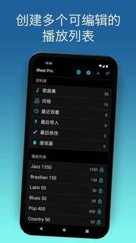 4、iRealPro还内置了超过2000张和弦图表和50多种音乐风格,为用户提供了丰富的学习参考。