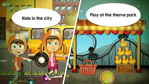 3、孩子们可以在沙滩上玩球,控制城市交通,挑从苹果树苹果,赢在主题公园和奖品这么多!游戏中还有探索、体验和发现一个场景内的所有有趣的活动和交互。