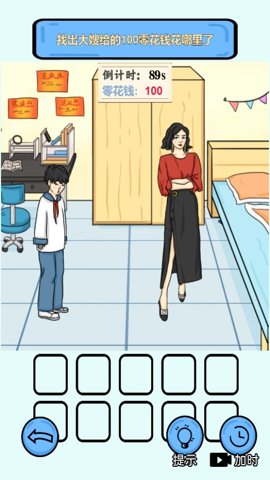 2、玩家需要帮助大嫂强哥海产落难少女找出大嫂给的100零花钱找海鲜。