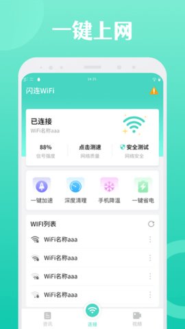 1、闪连WiFi免费版是一款无需钥匙连接WiFi的简单易用的手机工具APP。