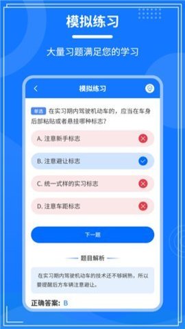 1、用户可以根据自己的需求和水平,选择不同难度的题目进行练习,从而全面提升自己的驾驶技能和交通法规知识。