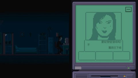 3、游戏采用像素风格的画面,玩家可以根据聊天内容作出不同的反应,探索房间并解决谜题。
